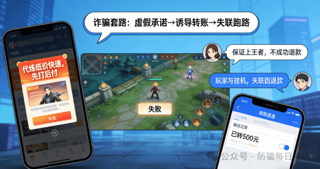 游戏代练诈骗:李某玩游戏时,被游戏好友邀请代练跑图,对方让其在咸鱼建订单,谎称已支付却未显示。随后以 “买保险保证交易”“支付错误需补转” 为由,诱导李某支付1000元押金,又发QQ二维码让其联系退款。最终在对方语音指导下,李某通过扫码支付、购买礼品卡等方式,累计损失 15960 元。